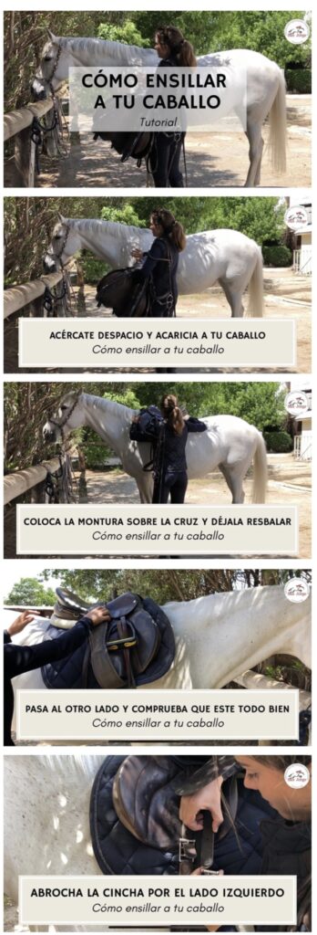 Después es el momento de ensillar el caballo: poner la montura y la cabezada.
