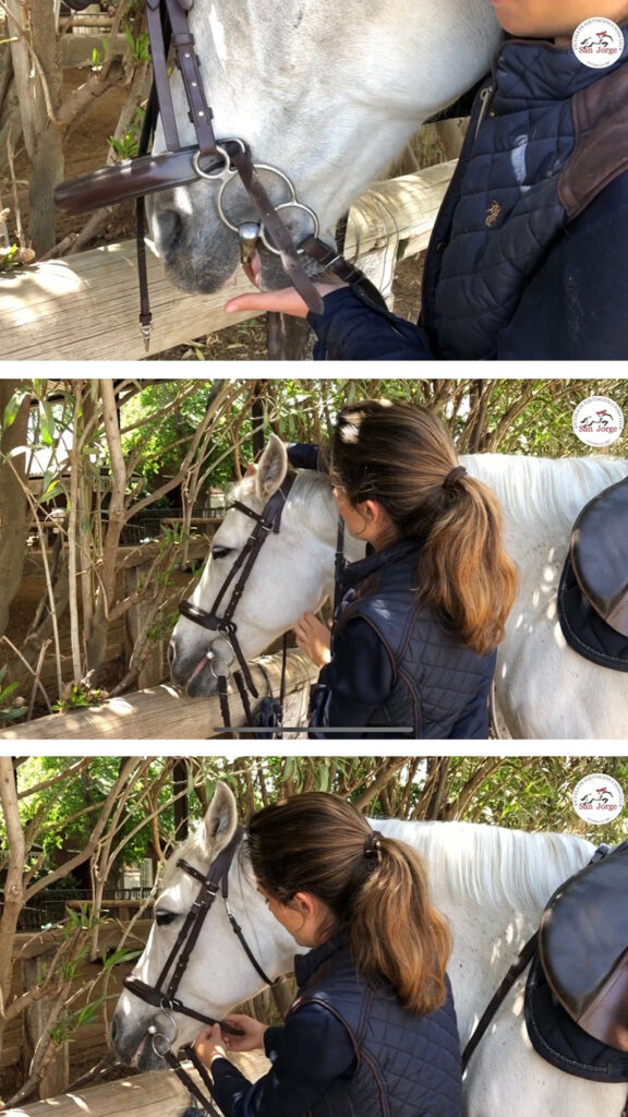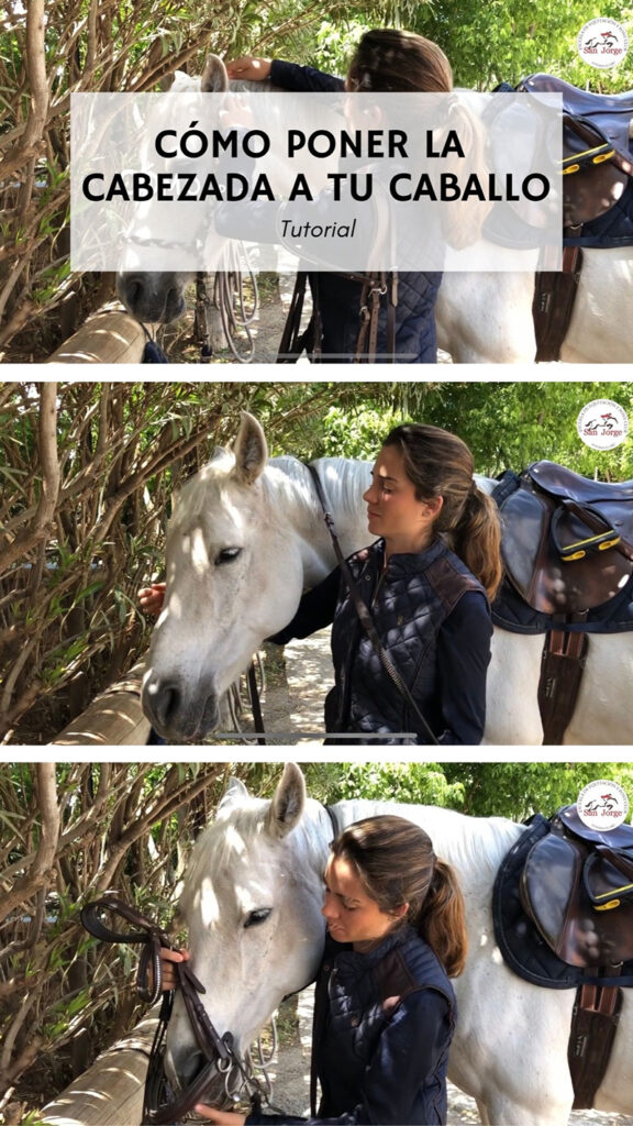 Poner la cabezada no es tan sencillo, en especial cuando se hace las primeras veces. ¡Pero todo es cuestión de práctica! En las clases de montar a caballo que impartimos en San Jorge animamos a los alumnos a preparar a sus caballos antes de las clases y así poder practicar para poner todo el equipo, tanto la montura como la cabezada.
